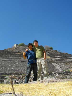 さて、そんなこんなで市場をさまよいながら、朝飯は、旨そうな具が並べてあったTacosのお店をチョイス。やはりこれが定番であり、旨いんです。食事の後、午前中は車で、街のいろんなところを案内してもらいました。Queretaroの街を一望できる丘の上に行ったり、El Cerritoというアステカ以前のピラミッドに連れて行ってもらったりして。メキシコでは遺跡巡りも楽しみの一つ。El Cerritoは、メキシコでの遺跡遭遇第一号となりました。