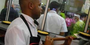 また、スナック感覚の食べ物もたくさんありまして。ちっちゃなコロッケみたいなのが、一個1ペソ。こういうのをつまみながら歩いている人もよくみかけます。それと、ソフトクリーム。これが1ペソで食べれちゃうんです。はまっちゃいましたねぇ、これは。暑いCubaでは、この冷たいソフトクリームが旨い。しかも、4円で食べれちゃうとなれば、ついつい手が伸びてしまいまして・・・一日2,3個はペロリといっちゃいますね。