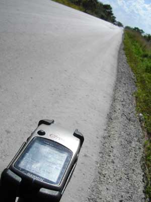 自転車旅の強い味方はなんといってもGPS。前にも書いたと思うのですが、オモチャ程度には使えるかなと期待せずに持ってきたのですが、ところがどっこい、今となってはこれ無しの自転車旅は考えられないくらい重宝してます。ダラスのアウトドアショップでGARMINを自転車に取り付けるアダプターを購入して、ハンドル前に取り付けてます。地図データは、ネットでフリーの地図があるので、それをダウンロードして、メモリに突っ込み、表示。ただ、町の地名とかうまく表示できないこともあって、そんな時には購入した紙版の道路マップと照らし合わせ位置確認。これで、ほぼ間違えることなく決めた道を進むことができるんです。