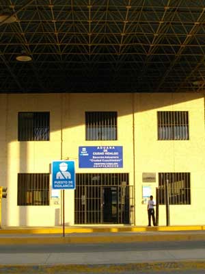 メキシコ側の国境の町Ciudad Cuauhtemocまでは約90km。朝早く出れば、たどり着ける距離だけれど、今日は朝からバタバタ動いていたので、出発が10:00過ぎになってしまった。うーん、辿り着けるだろうか?と思いながら走っていると、今日の道はひたすら下り坂。今まで登って貯めてきた位置エネルギーを放出すべく、快適な下り走行。16:00過ぎには無事目指した町に到着。国境の町で、イミグレ関係の建物を見ると、いよいよ、大好きなメキシコともお別れかぁ・・・という思いにとらわれ、シンミリしちゃいました。