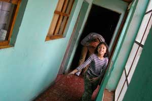 Today was festival in Quetzaltenango. There are interesting customs which one throw a shell of egg (called cascarones) to other's head. Only today this rude was admitted. A free-and-easy party today. I was thrown cascarones by sandra and raura. This was foolish but very fun.