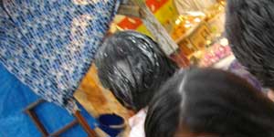 さて、そんな特別な日。午前中の授業が終わって、昼飯を食べ、部屋で復習していると、トントンとドアをノックする音が。開けてみると、ラウラがモジモジとして立っている。「何?」というと「秘密の話があるの」と、ラウラ。どうやら耳打ちしてお話がしたい様子。お兄さんに愛の告白をされても困っちゃうゾと、背が小さい6歳のラウラに合わせてしゃがみこんだ次の瞬間・・・頭の上でクシャッと卵の殻のつぶれる音と共に、粉々になった卵の殻が髪の毛から零れ落ちる。そしてキャッキャと喜ぶラウラの笑顔!<やられた、これがカスカローネスか・・・>。そう、ラウラの頭脳プレイにまんまとひっかかってしまったわけなんです。ちくしょーと思いつつも、なんだかちょっと嬉しい気分。ふと、オーストラリア人のスコットの部屋を見ると、そこにはお姉さんのチニータの姿。そして、僕と同じ手口でカスカローネスを頭にぶつけられるスコットが・・・