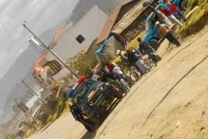 この激闘、時間にして2~3時間。空にはすっかり雲が広がってしまい、登ってもサンティアギートは見れない状況になってしまいました。それより、タカさんがお疲れということもあり、このまま戻ることにしまして。帰りはバスにしようと、ちょっと下ったところにあるバス停で待っていると・・・ちょうどバスが来た時に、おばちゃんのトラックが!僕らがバスに乗ると、運転手に「彼らはお金を払わないわよ」と捨て台詞。うーん、なんておばちゃんなんだ。