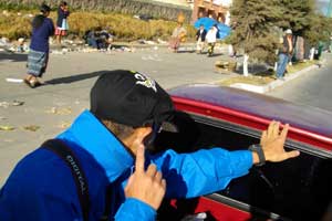 戻ると、口論はまだ続いていて、しかも、野次馬がたくさん集まっていた。そして、警察登場。警察が言うには、こういう場合、最初に値段を言うべきなので、僕らは5ケツ払う義務はないと。それでも一人3ケツだと受け取らないというおばちゃんの頑固な態度に警察も呆れ顔。もう、払わないでいいからそのまま行ってもいいよと警察は言ってくれたのです。が、ここで、なんにも支払わないで去ったら、あとから何言われるか分からないと、タカさんが一人4ケツ分32ケツアールを渡す(おばちゃんは受け取らなかったのだが、助手席にいたお姉さんが受け取った)。