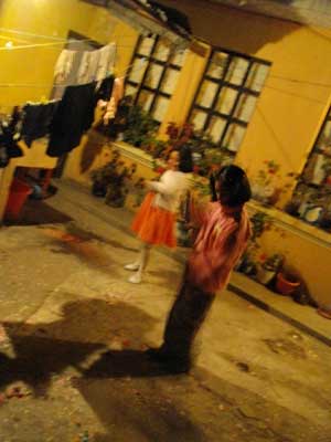 ホームステイ最終日。お世話になった皆さんに別れを言って、TakaHouseへ戻る。ここでホームステイしている間、勉強の合間、特に夕食後には、チニータやラウラに、<グアテマラ版コオリ鬼>や、<何回やった?ゲーム>などをして遊んでもらいまして。<何回やった?ゲーム>とは、質問者と、回答者を一人ずつ選び、質問者は回答者の後ろで「Cuant vezes?(何回やった?)」と言ってあるジェスチャーをするんです。回答者は勘で、「Uno(一回)」とか「Siempre(いつも)」とか答えるんです。で、質問者のジェスチャーは、歯磨きだったり、鼻をほじったりだったりと、いろいろ。鼻をほじるジェスチャーの時に「Siempre」とか答えちゃうと、大笑いってことになるわけなんですよ。単純な遊びなんですが、子供とやると、大盛り上がり。