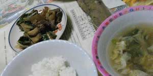 TakaHouseに戻って、再出発に向けて自転車の整備やら、洗濯やら、食材の買出しやらをしていたら、あっという間に夕刻過ぎ。今日の夕食は、牛肉と茄子の炒め(?)もの。日本の家庭料理風味付けのチエコさん料理は、抜群だす。うーん、味のしみこんだ茄子が旨いっ!これで、明日からの自転車生活がんばれます。それにしても、ここんところ、食生活はすごく充実していて幸せ。