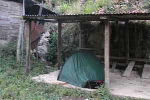 Yo no pude llegar ciudad por carretera de montana y derrumbe. Entonces pido lugar para dormir a persona de casa sobre caretera.
