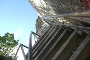 そして、眺めが抜群だという五号神殿に上ることに。ものすごい急斜の階段を上り眺めてみると・・・密林の中から一号神殿、二号神殿がポッカリと顔をだしている。あぁ、これもイメージどおり!そうそう、こういう風景を生で見たかったんです!そして、次に、ティカルで一番高い四号神殿へ。ここからの眺めがまた最高!何時間でもここでボーっとしていたいという思いに駆られること間違いない風景です。おいらは1時間くらいボーっとしてました。