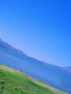湖を抜けた後、ひたすら登り道が続く。結局1,200mほどの高度まで上がってきた。ここまでくると、昨日までの暑さはどこへやら。山登りはキツイけど、あの暑さを耐えることと比べたら山登りのほうがマシ。あぁ、夕刻の涼しい風が、身体を癒してくれます・・・