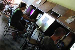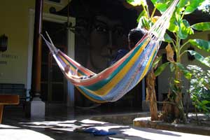 というわけで、ここグラナダに3日ほど滞在することになりました。しばらく走りっぱなしだったから、身体を休めるにはいいタイミングだし、いい環境でもあるしなってことで。そう、いい環境なんです。月曜日まで待ってもいいかと思った一番大きな要因は、グラナダで泊まっている<Hostel Oasis>がすごく居心地がいいから。ここ<Hostel Oasis>はドミで一泊150ゴルドバとちょっと高めなのですが、ハンモックやらプールがあり、暑さを避けてマッタリするには、十分すぎるくらいの設備がそろってまして。あ、ハンモックって結構気持ちいいんですよ。ウティラ島で毎日ハンモック昼寝をして以来、結構ハマッているオイラでした。そして、なんといっても、インターネットがフリーで使い放題。パソコンも数台置かれているのですが、無線も飛んでいまして。ラップトップ持参のオイラは、久々につなぎ放題でネットサーフィン。コスタリカではどの国立公園がいいのかとか、パナマ~コロンビア間をどうやって渡るべきなのかとか、この先に訪れる国に関して、ポテチをかじりながらゆったりと、いろいろと情報を仕入れました。