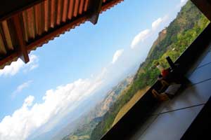 Alajuelaからしばらく上りの山道が続くのを地図で確認していたので、覚悟の上ではあったのですが・・・やっぱり山道は厳しい(涙)。午前中はひたすら自転車を押し続け、11時頃、ようやく山の頂上らしき場所へ。いやぁ、ここからの見晴らしは最高。山は上っているときは大変だけど、上っちゃえば、心地よい開放感で満たされるんですよねぇ。これがあるから、なんとかがんばれる。さて、頂上付近には、この素晴らしい景色を見ながら食事ができるレストランがあったので、ここで昼食をとることに。しばし休息。