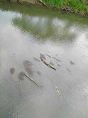 しばらく走っていると、とある橋に出た。カララ国立公園近くのタルコレス川という川にかかっている橋なのだが、景色がいいので、写真をパチリ。そして、ふと橋の下を見ると、な、なんと、クロコダイルがいるじゃないですか!落ちていたテンションが一気に上がる。そういえば、地球の歩き方に、タルコレス川にはワニがいて、途中の道で見れるようなことが書いてあったことを思い出す。そうか、ここか、道の途中でクロコダイルが見れるスポットというのは。それにしても、普通の道にかかっている橋の下に十何匹ものクロコダイルがいるなんて、さすがコスタリカ。いいものを見せてもらいました。
