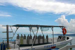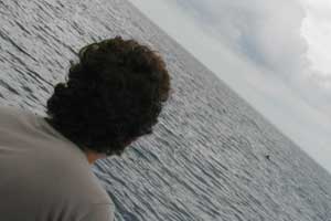 カーニョ島に向かう途中で、なんとイルカに遭遇。おほほ、ウティラでのホエールシャークといい、今回のイルカといい、海に関してはなかなかツイているかも、おいら。ただ、ダイブマスターの話だと、今の時期、この辺にマンタは居ないとのこと。密かにマンタを見ることを楽しみにカーニョ島ダイブを申し込んだオイラとしては、ちょっとガッカリ。