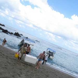 そのまま宿に戻り、おじさんに16:00に船が来ることを確認して、発着所であるビーチへ。ちょっと待ち時間があったので、ボーっと、海釣りをしている人たちを眺めて過ごす。しかし、時間になっても一向にボートが来る気配がない。なんの目印もないビーチで船を待つというのは、ものすごく不安なもの。ビーチを歩く現地の人らしき人に聞いてみると「今日はボートはないよ」と。えぇ、宿のおじさんは16:00に来るって言ったし、昨日、Sierpeでも明日は16:30にボードが出るよと言われたのに・・・17:00まで待ったものの、ボートは来ず。しょうがないので、宿に戻ると、おばちゃんがおじちゃんに「今日は日曜日よ」、と。おじちゃん「ああ、そうか、ゴメン、今日はボートは来ないや」「・・・」。まぁ、来ないものはしょうがない。もう一泊ココで泊まることにしました。一応Hotelマルガリータに今日戻れなくなったことを伝えようと思ったものの、なぜか電話が通じず。まぁ、一日くらい問題ないでしょと、楽天的判断で、連絡も諦める。