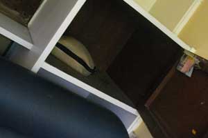 やはり、部屋の中には無かったので、隣のモノ置き部屋を一応調べてみた。何故隣の部屋に行ったかというと・・・これはなんとなく部屋に呼ばれたとしか言いようがない。そして、部屋を探すこと数分、部屋の奥の棚を開くと、なんとそこにパソコンが!そう、無くなったパソコンがこんなところにあったのです。この時の、気持ちといったらモウ!!!オイラがこんなところに置くわけはなく、誰かが一旦隠すためにここに置いたのだろう。盗ってすぐ手元に持っていると、騒ぎになって、荷物検査したら引っかかるかもしれないからな。というか、10分間の短い時間では、ここに放り込むくらいしかできなかったのかもしれない。なにはともあれ、とにかくあってよかった~。身体の力が一気に抜けました。
