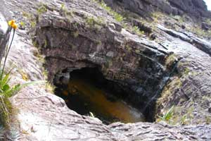 さて、8:00過ぎに出発。今日は一日、頂上探索ツアーなのだ。まずは、El Fosoという滝に行くらしい。片道4時間くらいかかるとのコト。山の上を4時間歩くって・・・平らなテーブルマウンテンならではですな。