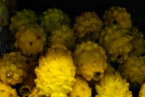 その後スーパーへ行って果物コーナーを巡る。ここ、コロンビアはトロピカルフルーツがたくさんあって、果物コーナーはワクワクするのだ。いつもは小粒で甘いマンゴーを買うのだが、今日は、ドラゴンフルーツ(PITAHAYA)とパッションフルーツ(GRANADILLA)に挑戦してみることにした。ドラゴンフルーツは、ここでは、イエローピタヤが売っている。外見は突起物があり、ちょっとグロテスクなのだが、中は、白いゼリー状の果肉。これが、つるっとしていて、甘くおいしいのだ。パッションフルーツは、外見は普通だが、中がカエルの卵みたいでちょっとグロイ。食べるとちょっと酸っぱい。オイラとしてはドラゴンフルーツが気に入ったかな。明日も食べてみようっと。