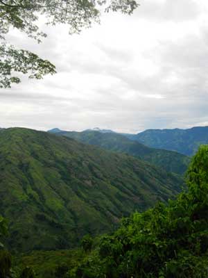 今日は1000mほど上がった地点にあるValdiviaという町で宿をとることにした。このValdiviaという町、家がレンガ造りになっていて、その家が尾根づたいに連なっているという、とてもボニートな町だった。泊まった宿も、久々にこぎれいな部屋で、いい感じ。そして、なんといっても・・・宿に併設のレストランのお姉ちゃんが、かわいかった!オイラの旅に興味を持ってくれ、オシャベリをしたのですが・・・あやうく、惚れちゃうところでした。あと一泊して、もうちっと話すチャンスがあったら、確実に惚れてたな、うんうん。それにしてもコロンビアは、きれいでキュートな女性が多いような気がします。