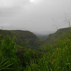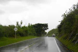 山上りに、パンクに犬と、今日は散々だなと思いながら、また始まった山道を上っていると、怪しげだった雲空からポツポツと雨が降り始めた。そして、すぐに本降りに。目指すEl Bordoという町まではまだちょっと距離がある。雨宿りをしていると、着く頃には日が暮れそうな予感。しょうがないので、雨カバー&カッパを装着して、雨の中走る。道路わきから見える山の風景は素晴らしいのだが、正直その景色を堪能している心の余裕がない。あぁ、今日は嫌なもの四重奏。なんでこんな状況でここを走っているのだろう?という自問自答で頭がイッパイなのだ。