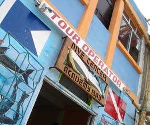 腹も膨れたところで、まずは、ダイビングショップ巡り。ここ、ガラパゴスは陸もいいのだが、海がスゴイという話を聞いていまして。ガラパゴスに訪れたからには、そりゃ潜ってみないと、と、密かにここでのスキューバを一番楽しみにしていたのでした。最初に入った店で、お目当てにしていたゴードンロックスでのダイビングが明日あると言われる。値段を聞くと2ダイブで120$。170$前後を想定していたオイラ、お、これはと心を動かされる。しかも、水中撮影用のカメラをキトに置き忘れてきたのに気づき、どうしようと思っていたところ、ダイブマスターが撮影したデジカメ写真をCDに焼いてくれるサービスが無料でつくという。それを聞き、即決してしまいました。