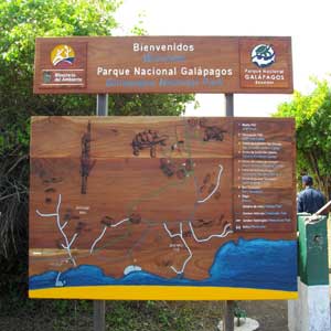 入島ゲートに並んでいると・・・皆さん、なにやら手にカードを持っている。おぉ?オイラはそのカードもらっていないぞ?どうやらガラパゴスに入島するにはツーリストカードがいるらしい。10$支払ってカードを購入し、記入していたら、最後尾になってしまった。カードとパスポートを出し、手続きを済ませ、隣のカウンターで、噂のガラパゴス入島税100$を支払う。ここまでで、すでに500$強の出費。ガラパゴスでいったいどれだけ散財することになるのだろう・・・