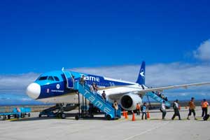 空港は朝早いにも関わらず、意外と人で溢れていた。一番奥のTame航空カウンターに並び、チェックイン・・・と思ったのだが、預ける荷物の中身チェックを別の窓口でやってから来てくれと言われ、荷物チェックの列に並びなおし。無事荷物チェックを終え、再びチェックインカウンターに。今度は無事チェックイン完了。荷物を預け、ゲートへ向かう。途中長い列になっていた手荷物検査に並んだが・・・ここで、手持ちのナップザックに入れたままにしてあった十得ナイフが引っかかる。「ナイフ類は機内持ち込み不可。ここで没収になるが、いいか?」と聞かれたので「ノン!」と抵抗。「だったら、チェックインカウンターに戻って、預け荷物の中に入れて来い」と。しょうがないので、再びチェックインカウンターに行って、ナイフを見せると、カウンター後ろの職員専用通路に入れてくれ、多くの荷物が山積みになっているカートを指差された。「この中から自分のカバンを探してね」。後はほったらかし。オイラがいい人だからいいようなものの、こんなに無防備でいいのか・・・なんて思いながら、カバンの山をかき分け、やっとの思いでオイラの荷物を発見し、ナイフを中へ。そして、先ほどよりさらに長い列になっている手荷物チェックカウンターへ並びなおす。ふー、ギリギリだったら危なかったなぁ、何があるか分からないから、空港へは早めに来ておくもんだ。今度は無事ゲートを通過。待合ロビーへ。