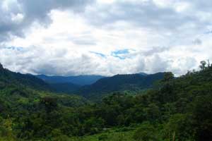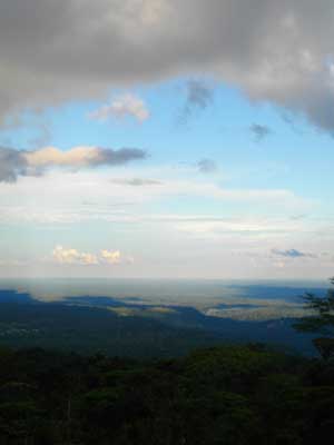 そして、さらにいくつもの山を上り下りし、最後の山を上り終えた後、眼下に見えたのは・・・水平線のかなたまで広がるうっそうと茂った木々、ジャングル。ス、スゴイ・・・これまた、あまりにも圧倒的な光景に、しばし呆然。