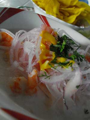 さて、今日は、お昼ご飯にセビチェを食べてみた。セビチェとは、まぁマリネのようなもの。海老のセビチェをオーダーしたのだが・・・う~む、期待しすぎてしまったか、あぁ、こんな味ね、という感じ。特別に美味いっと飛び上がるようなものではなかったのが残念。