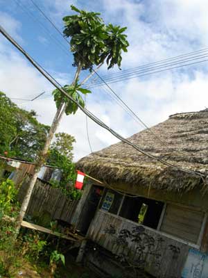 さて、2時間ほど経ち、Pantojaという村に到着した。ここは、すでにペルー。ペルーのイミグレがある村なのだ。ボートを降りて、早速イミグレへ・・・と思ったら、なぜかサンドロは売店に入っていく。「え?イミグレに行くんじゃないの?」と聞くと、「そうだ、イミグレだ」とサンドロ。なんと、ここPantojaのイミグレは、売店の中にあったのです。というか、売店の隅にテーブルがあり、そこにイミグレ職員が座っているだけなんですけどね。で、売店の中なんで、ホンワカムードでポンとスタンプを押してくれるのかと思いきや、「ペルーは初めてか?」「目的は?」「これからどこへいく?」と厳しい目の職員から矢継ぎ早に質問を浴びせられる。うっ、意外と厳しいのね、とたじろぎながらも、問題なく3ヶ月の滞在ビザスタンプを押してもらえまして、「ウェルカム・ペルー」と職員と固く握手。いやぁ、ようやくペルー入国ですよ。実は二度目になるペルー、再訪を楽しみにしていたんですよ。前回はツアーだったので、今回、自転車で回ることで、前回とは違ったペルーを垣間見たいなぁと思ってまして。当初の旅の計画では、もっと早く着くはずだったんですが・・・リマ在住のニシザワさんに「行きますから」と言い続けて、はや一年。お待たせしてます。