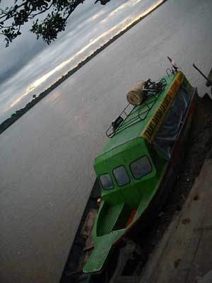 夜中の3時まで近くのディスコからの音楽が鳴り止まず、すっかり寝不足状態。朝6時にMazan行きの船が出るので、5時に起きて準備して川へ。まだ真っ暗だったのだが、数人の客がすでに集まっていた。その中に、オメテ君の姿が。ツアーはこの村で終了なので、これから先は一人で向かわなければいけないと若干不安を感じていたところだったのです。が、途中からカヌーボートで一緒になったオメテ君がIquitosへ行くということなので、一緒に連れていってくれと、カヌーボートに乗っている時に、話をしてまして。これから先は、オメテ君がサポートしてくれることになったのでした。やっぱり相互扶助の精神ですな。