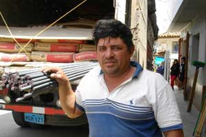 そして、Chachapoyasまであと10kmほどというところまで来たところで、一台のトラックが停まっていた。横をすり抜けようとしたオイラに、運転席から声がかけられた。「Chachapoyasまでいくのか?」「ええ」「これから、キツイ坂になるから、荷台に乗ってけ」。時間も体力もあったので、なんとか辿り着けるなとは思っていたのですが、ここは親切には甘えておきましょうと、おじさんのトラックに乗せてもらうことにしたのでした。おじさんありがと~。ホントにペルーの人っていい人達ばかり。