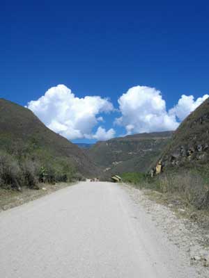 2334mのChachapoyasの町から1500mくらいの道に下りる。そうそう、この辺の道、Pedro Ruizから続くメイン道路は、ずっとRio Utcubambaという川沿いに道が続いているんです。ですので、メイン道路をただ走って南下するというのであれば、そんなに大変な道ではない。起伏もそんなに激しくないし。が、この道の両脇に3000m級の山々がありまして。町や村々、そして遺跡群は、この3000m級の山の上にあるか、山を越えたところに存在しているっているのが、やっかいなのです。ちょっと寄り道して遺跡を見ていこうなんて思うと、ものすごい峠越えが待っている・・・メヒコの時のように、道脇にある遺跡制覇とはいかず、泣く泣く断念せざるを得ない遺跡も数多くってワケなのです。