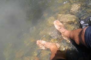 これから遺跡に向かっても、十分辿り着く時間ではあったのだが、意外と体が疲れているので、上るのは明日にして、今日はもう休むことにした。で、シャワー&洗濯をしようと思ったのだが、水が出ない・・・昼間は宿の水が出ないとのこと。しょうがないので、近くの川で水浴び&洗濯。この辺の水は透明度が高い。キレイなのはいいのだが、凍るように冷たい水は、水浴びにはチト厳しかった。