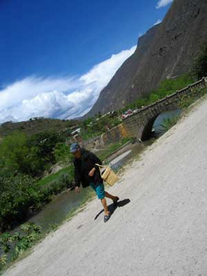 さて、相変わらず坂道下りでは、パンクの連発。本日久々の5回連続パンクとなり、泣けてくる。なんとか坂を下り終え、Leymebanba方面の道へ。ここから非アスファルト道に突入。未舗装ってワケではないんだけど、ガタガタ道。