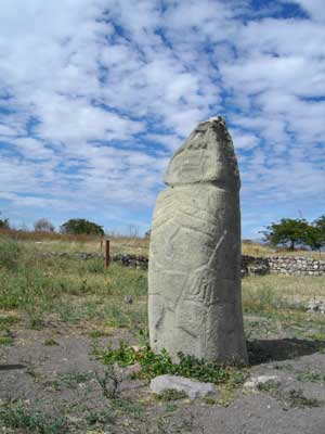 ここは現在、神殿のみ、きれいに復元されている。ただっぴろい広場に、なんともいえぬバランスで、石像がポツンと置かれているのが素敵。この雰囲気、キレイに詰まれた石段、ヘンテコな石像・・・大好きなんです、こういうの。さて、この神殿の奥にも遺跡は広がっているらしいのだが、発掘後に、再び埋められてしまったみたい。せっかく発掘したのだから、そのままにしておけばいいのに・・・と残念に思いながら、神殿の奥に行くと、土の表面から、おそらく遺跡の一部であろうと思われる石が顔をだしていた。この石を見ながら、フト思った。そうか、そもそも遺跡を最初に発見した時って、こういう状態なのか、と。長い間かけて土をかぶってしまった遺跡は、地表では、石が転がっているようにしか見えない。これを掘り起こしてみると、神殿がでてくるっていうんだから・・・ロマンですねぇ。