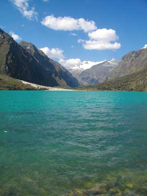 そして到着したヤンガヌコ。ヤンガヌコは、チナコチャ湖とオルココチャ湖の二つの湖がある。オイラ達が行ったのは、チナコチャ湖。天気がよく、奥にヤナパクチャ山、右手に6768mのワスカラン山が望め、絶景であった。が、オイラ的には、あまりにも構図が決まりすぎて、ちょい面白みに欠ける風景。なんか、写真で見たまんまなんだもん。で、この風景よりも、山上り最中に見れた、白い山々が連なるブランカ山群の圧倒的な迫力の方がグッときたのでした。