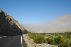 このスーペという町近くにあるスーペ谷という渓谷に、南米大陸最古の遺跡なのでは?と考えられているカラル遺跡という遺跡がある。遺跡好きとしては、そりゃ、訪れておきたい遺跡なワケで。ただ、このカラル遺跡、パラモンガと違い、パンアメリカンからだいぶ山方向に入った場所にあるのだ。地図によるとスーペの町から27kmほど内に入った場所らしい。うむむ、ここスーペで泊まってカラルに行こうかとも考えたのですが、このカラルに行くにはもう1本道があって、それが、パンアメリカンをもうチョット南下したワウラという町近くにある脇道から向かう道なんです。こちらの道からだと脇道入ってからカラルまで24kmほど。今日は最長記録がかかっていることだし、脇道の未舗装道路は短い方がいいか、という判断で、今日は先にあるワウラまで走り、明日ワウラに荷物を置き、自転車のみでカラルに行くことにしたのでした。
