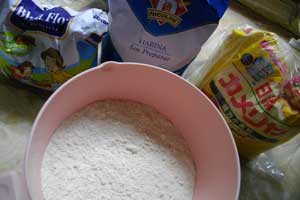 日本製の強力粉にペルー産の強力粉と薄力粉をブレンドし、お湯を少しずつ足しながらコネコネ。いつも一人分しか作らないから、パーティ用の分量としてどれくらい作ればいいのか微妙に迷う。もうちょっとあったほうがいいかなと思いながら少しずつ粉も足していったら・・・結構でっかいボールが出来上がったのでした。これをラップに包み、しばらく寝かす。