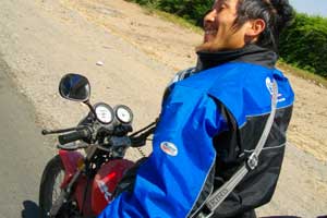 お腹を満たし、再び道へ。相変わらずキツイ日差しの中進み、途中、路肩に自転車を停め、水補給休憩をしていると、バイクが一台追い抜いていった。なんとなく見たことがあるシルエットだなぁと思って眺めていると、スピードを緩めて停まるではないですか。ん、あれはひょっとしてショウさん?と思い、自転車に乗って近づくと、やっぱりショウさん!リマのニシザワさん宅で再会した後、ピスコに戻ったショウさんは、今日、ナスカに向けてピスコを出たとのこと。そうそう、今日、ピスコを通過するので、ショウさんに連絡しようと思っていたのだが、あいにく、泊まった町では、ネットがつなげず、連絡が取れなかったのです。そんな未連絡状態での、偶然の再会。いやぁ、またまたテンションが上がる出来事です。しばらく立ち話をした後、ショウさんはナスカへ、オイラはイカへ向かって出発。バイクのショウさんはあっという間に小さくなって消えていきました。オイラはナスカまでは早くてあと2日はかかるなぁ・・・