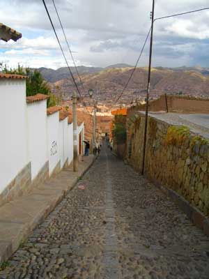 昼過ぎ、明日から予定しているマチュピチュへのショートトリップに必要なモノの買出しに出かけた。そうそう、このショートトリップ、結局、自転車に乗って、途中にある遺跡をゆっくり見ながら、マチュピチュに向かうことにしたんです。で、クスコ近郊に散らばっているいくつもの遺跡を見る人用に、周遊券なるものが販売されてるのを知りまして。70ソルとちょいと値段ははるのだが、見れる遺跡はなるべく見ていこうと考えているオイラ、遺跡ごとに入場料を支払うより、周遊券を買っておいたほうが得かなと思い、購入。