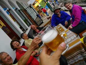 さて、このプトゥクシ登山、登るより下る方が怖い。めちゃめちゃ神経を使いながら、ゆっくり下山したところ、村はずれにあるレストランで、先ほど頂上で出会ったドイツ人のおじさんおばさん達が、ビールを飲んでいた。オイラの姿を見た、おじさんおばさん達は「まぁ、飲んでけ」と。喉がカラカラだったオイラは、もちろん喜んでお呼ばれ。「乾杯!」・・・ぷはぁ、一気に飲み干したビールのなんと美味かったことか!