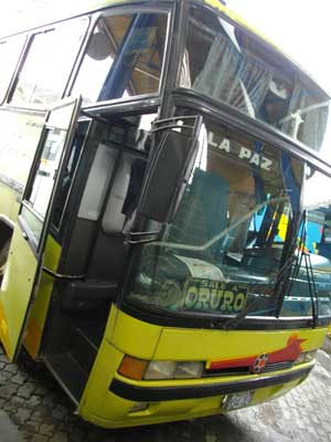 モーリーさんとお話できたし、原稿は送ったし、買い物も済んだし、これで心置きなくラパス去れる、ということで、本日、ラパスを出発。当然自転車で・・・と思ったのですが、次の目的地、Oruroへは、一旦El Altoを経由しなければならないということが判明しまして。El Altoからラパスまでは猛烈な下り坂。それを今度は上らないといけないと思うと・・・ちょっとめんどくさくなっちゃいまして。バスで行っちゃうことにしました。まぁバスの値段が安かったっていうのも大きな理由なんですケドね。なんと15ボリだっていうんですよ。200円弱ですよ。はぁ~自転車で2,3日かけて移動する距離を200円で・・・なんだか考えさせられちゃう現実です。