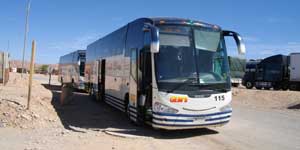 さて、あっという間に国境へ。チリの出国手続きはすでに済ませてあるので、アルゼンチンに入り、アルゼンチンのイミグレへ。特に問題なく、パスポートにスタンプをポン。バスのお客全員が入国審査を済ませ、バスに乗り込み、サァ出発と思いきや、イミグレの係員が乗り込んで来て、これから荷物検査をするという。どうやら、格納庫に入れてある荷物なども一個一個チェックするらしい。えぇ~、めんどくさいんですけど・・・と乗っている人たち皆でブ~という顔をしたら、その願いが通じたのか、手荷物チェックのみで、収納してある荷物は免除ということになった。その瞬間、皆で拍手。う~む、この拍手をイミグレの係員の人はどう聞いたのだろう?ちなみに、オイラたちの次のバスは、格納庫の荷物もチェックすることになったらしく、皆が収納していたバックパックを税関(?)の窓口まで運び込んでいた。あぁ、あんなことにならなくてよかった。だってオイラの荷物、一人じゃ運びきれないんだもん。