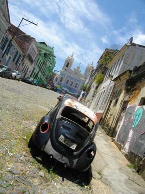 確かに、旧市街を歩くと、いたるところに警察の人がいる。安心して歩ける街だ・・・と思いきや、やはりまだ危険な地帯は残っているらしい。Cidade alta(上の町)とCidade baixa(下の町)に別れている市街地、このちょうど中間地点にあたる丘陵地帯は、現地の人も近寄らないほどの危険地帯らしい。ちなみに、宿近くにある下の大通りに続く路地道も、夜歩くのは危険だからやめておいたほうがいい、と注意されたのでした。