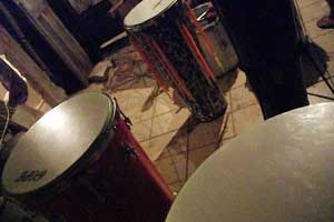 一息ついてたら、ソウさんとコレさんが太鼓の練習をしにやってきた。そこでオイラも混じってやらせてもらうことに。チンバウというトゥンバドーラに似た楽器を叩いてみた。手のひらで叩き、打点で低音、中音、高音を叩き分けるのは、トゥンバドーラと一緒。ただ、叩き方がちょいと違うのと、キューバで培ったはずのカンが、だいぶ錆びれちゃっているので、なかなかいい音がだせない。まぁとりあえず、基本のリズムパターンを教えてもらい、3人でユニゾン演奏。あぁ、久々の太鼓・・・気持ちいいッス、癒されます。ドンタッドタツツドタタタドタツツ・・・