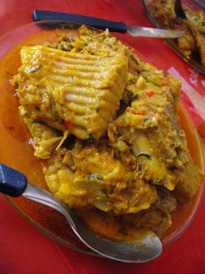 で、午前中の練習が終わったところで・・・今日は金曜日。よく食べに行く、通称<二階>と呼ばれる食堂で、金曜日にムケカが食えるんですよ。ムケカとはバイーアの郷土料理。魚の煮込み料理ッス。ということで、ここんとこ、自炊続きの昼ごはんでしたが、久々に、<二階>に行って食べることにしたのでした。二階に到着すると、すでに先発隊で向かっていた、ソウくんとウマくんとトミーとチャリダータカくんがムケカを食べているところで。オイラもそこに合流。皿に山盛りで出てきたムケカつきのコミダ・ド・バイーアをいただきまして。う~ん、これがムケカか・・・まぁまぁってとこかな。やみつきになるほどの味ではなかったのですが・・・ソウくんの話では、ムケカ専門店のムケカはメチャウマとのこと。機会があったら、ムケカ専門店にも行ってみるかな。