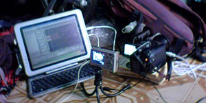 今日は朝からビデオ編集作業。クロさんカメラを使って、タクヤくんが、ナタカトシア・パレードをずっと撮影してくれてまして。その素材を使わせてもらって、思い出用に軽く仮編集映像を作ることにしたのです・・・が、クロさんのカメラは、CanonのHV30。これ、テープ録画なのです。パソコンに動画データをキャプチャーするためには、1394インタフェースカードとi-Linkケーブルが必要でして・・・オイラ、これらを、旅当初は持っていたんですが、ペルーのリマでDVカメラを日本に送った時に、一緒に送っちゃったんですよ。しまった、人のカメラを使わせてもらうことは想定していなかった。と悔やんでいてもしょうがないので、ここは、再撮で撮りこむことにしたのでした。再撮とは・・・ビデオカメラの液晶モニタに映像を映し出し、その画面を、デジカメの動画機能で写すというもの。ただし、音は、録音機能がショボイデジカメのマイクは使わずに、オーディオケーブルを使って、パソコンにダイレクトに取り込み。別々に録画・録音した映像音声データを後で、編集ソフトであわせるという手の込んだアナログ方式なのですよ。