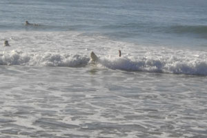 朝6時に起床。早速海へ出るという5人の後を追ってオイラも海へ。いやぁ、早寝早起き、健康的な生活です、サーフィン合宿。