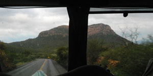 朝起きたら、目の前に、コンモリとしたテーブルマウンテンらしきものが・・・あまりの絶景っぷりに思わずカメラを取り出し、シャッターをきる。そして次の瞬間に思ったことは、あぁ、やっぱり、この道は自転車で走っておきたかった・・・なんどかバスワープしているオイラ。今までは、なんだかんだいって、自転車では相当厳しい道のみバスに頼っていたので、バスに乗っていても、まぁここはしょうがない、という納得感があったのですが・・・この道は・・・走ろうと思えば走れたんです。しかも、素晴らしい景色がみえる国立公園が道路沿いに広がっているということも知っていながら。単純に楽しようと思っちゃったんですよねぇ。その安易な思いに猛反省です。