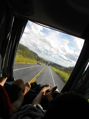 その後は、ひたすら、緑が続く平坦な道をひたはしるバス。iPodに入れておいた<オスカーニーマイヤー>のビデオを鑑賞して、ブラジリアへの期待感を高める。ビデオが終わると猛烈に睡魔に襲われ、ウツラウツラとうたた寝。途中、昼食休憩で起こされた。起こしてくれたのは、バスの前方に座っている数人のブラジル青年達。彼ら、オイラにしきりと話しかけてくれまして。とはいうもの、2ヵ月半もブラジルにいるのに、ポルトガル語、相変わらずサッパリなんですよぉ。半分以上、会話の内容が分からず、とりあえず、身振り手振りでなんとかコミュニケーション。コーラやら飴をさりげなく振舞ってくれて・・・ナイスガイなやつらです。